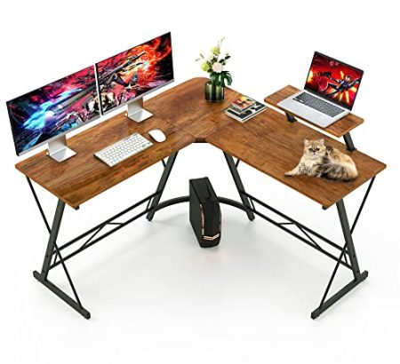 Mr IRONSTONE 𝐮𝐩𝐠𝐫𝐚𝐝𝐞𝐝 L Shaped Corner Desk, Computer Desk with Large Monitor Stand, Home Office Desk with Square Corner, Space-Saving Gaming Desk, Easy to Assemble, Log Vintage