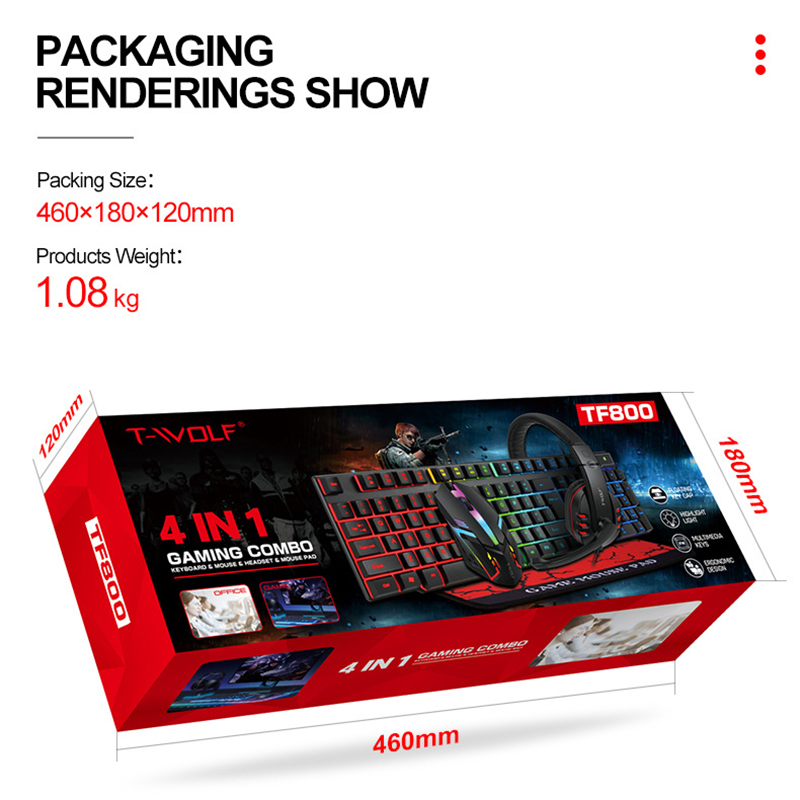 | Product name | TF800 Gaming Keyboard And Mouse Headset Combo |