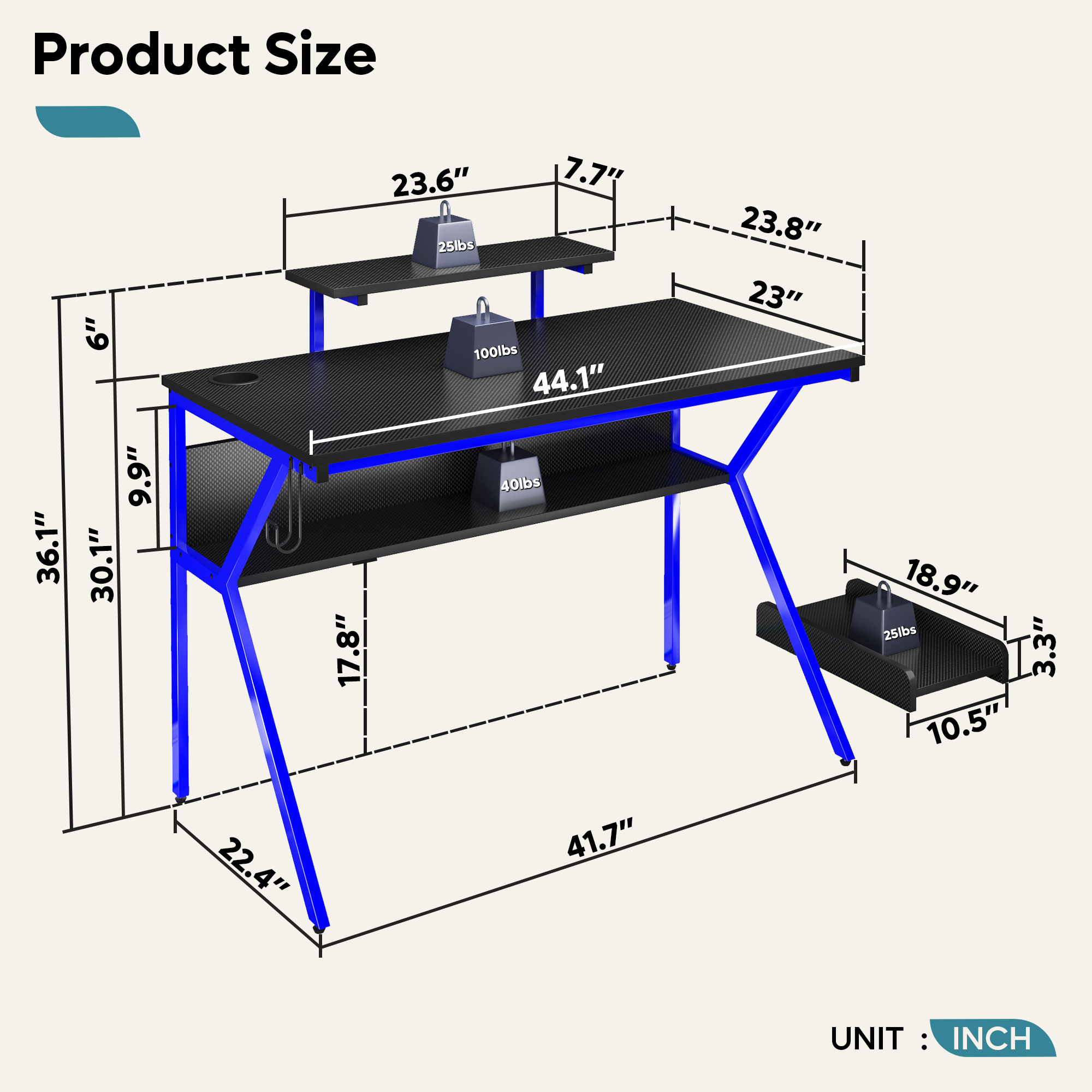 | Size | 44.1"L x 23.8"W x 36.0"H |