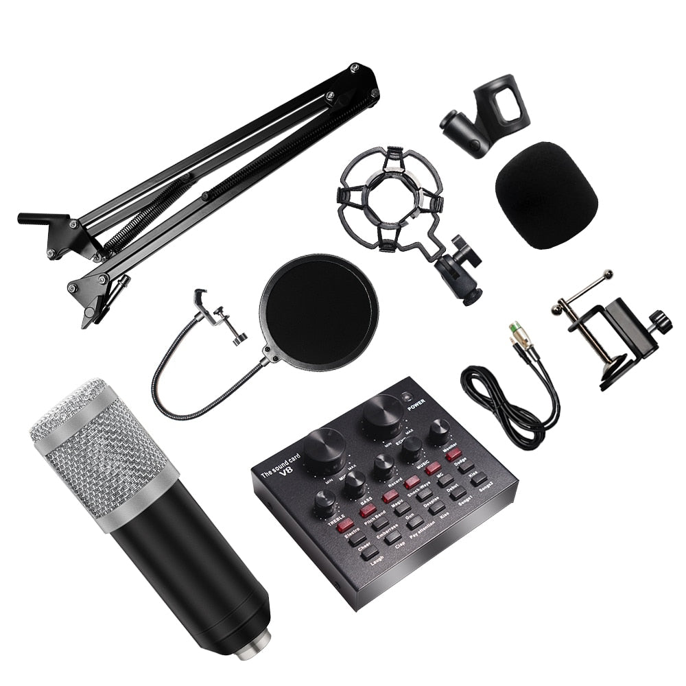 Bm 800 Studio Microphone Kits With Filter V8 Sound Card Condenser Microphone Bundle Record Ktv Karaoke Smartphone Microphone