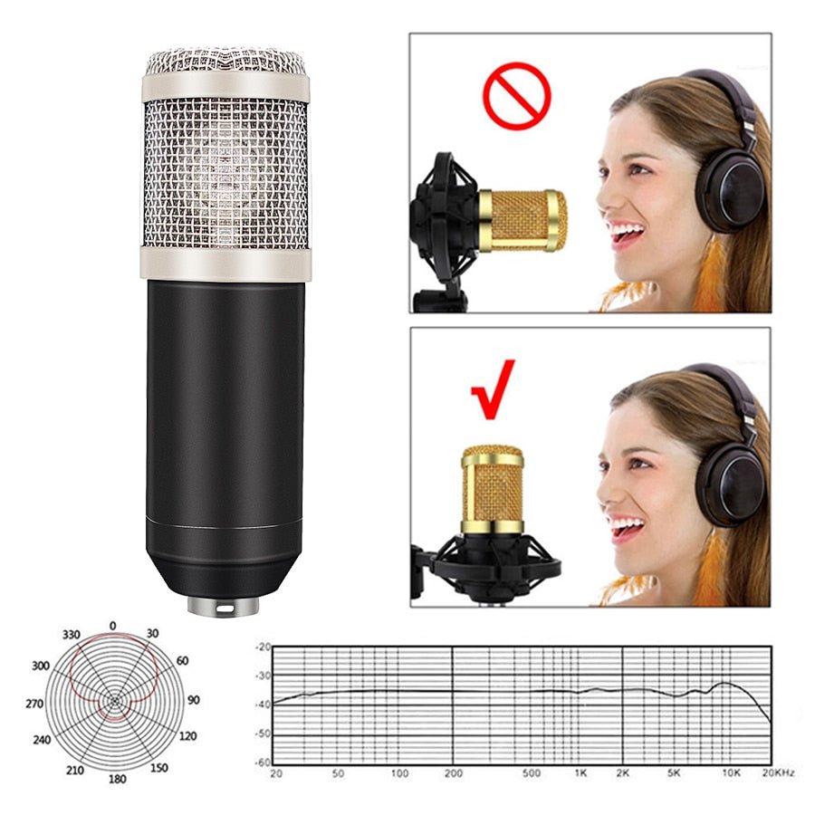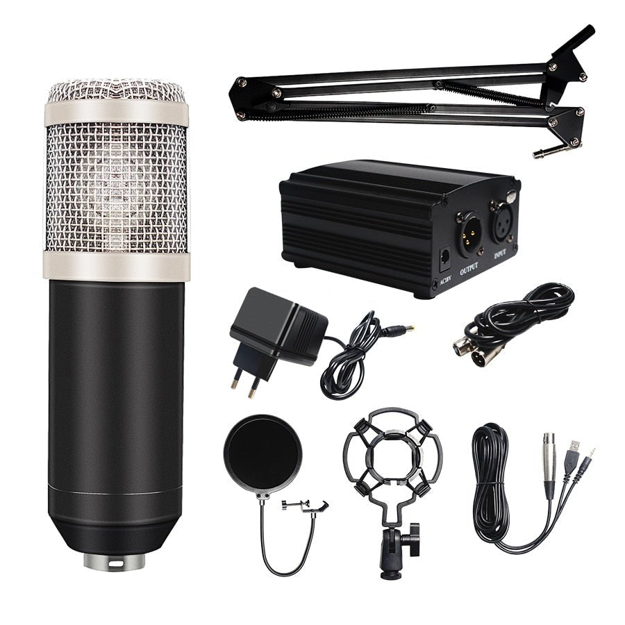 Bm800 Studio Microphone Condenser Microphone with Pop Filter&Phantom Power Vocal Record KTV Karaoke BM 800 Microfono Youtuber