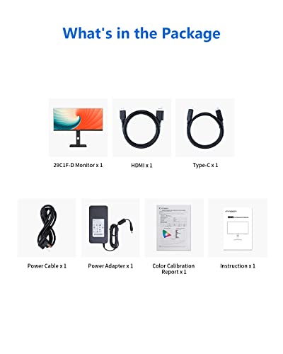 INNOCN 29″ Ultrawide Monitor USB Type C 21:9 IPS Display WFHD 2560 x 1080P 350Nits 99% sRGB DP HDMI Computer Monitor, 75Hz, Split Screen, Height/Pivot Adjustable, Wall Mountable – 29C1F-D
