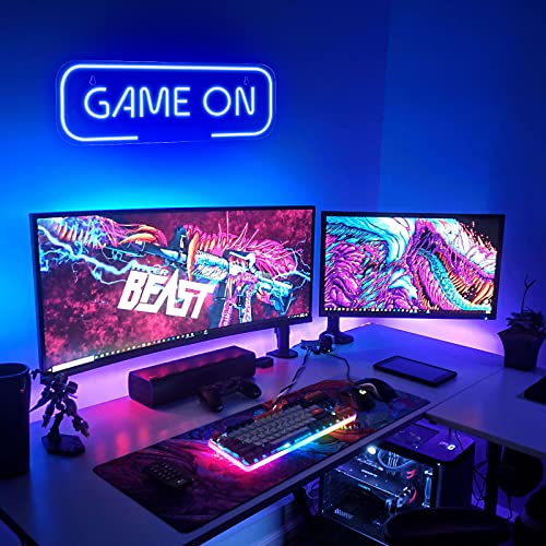 Kavaas Gaming Neon Sign, Game On Neon Sign for Game Room Decor – LED Game Neon Sign for Teen Boy Room Decor, Gamer Wall Decor – Best Gamer Gifts for Boys, Kids (Blue)