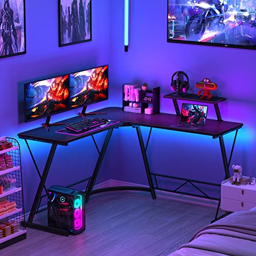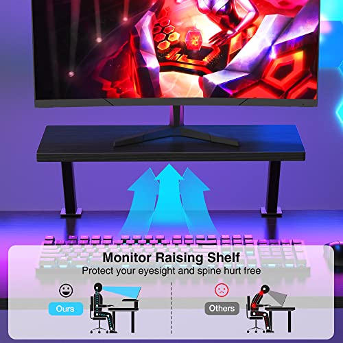 • ★Large Desktop & Ample Leg Room: This corner desk with 50.8″L x 18.2″W double desktops ensure your conversions around with ease while working/gaming. This corner gaming desk is up to 29.5 “D, with the optimal legroom, convenient for sitting and storage, which is also very friendly to tall people.
