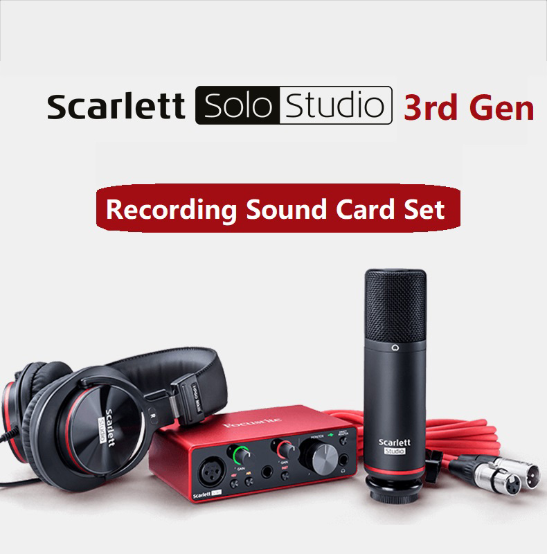 Professional Scarlett Solo Studio 3rd Gen recording sound card set 2 input/2 out USB audio interface with Condenser Mic & Headphone