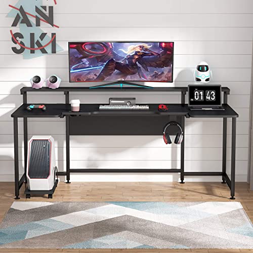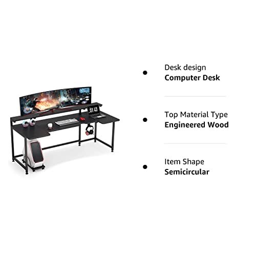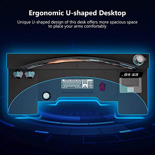 - – With its streamlined U-shaped design give you the ultimate immersive gaming experience, Widened 74.8-inch extra long desktop with monitor stand shelf provides enough space for your monitor, keyboard, laptop, and gaming gears